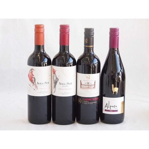 しっかりした存在感チリ赤ワイン 4本セット(クラシック カベルネ・ソーヴィニヨン デル スール カベルネ ソーヴィニヨン デル・スール カルメネール アルパカ シラー) 750ml×4本