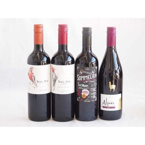 しっかりした存在感チリ赤ワイン 4本セット(クレマスキ ソムリエ カベルネ ソーヴィニヨン デル スール カベルネ ソーヴィニヨン デル・スール カルメネール アルパカ シラー) 750ml×4本