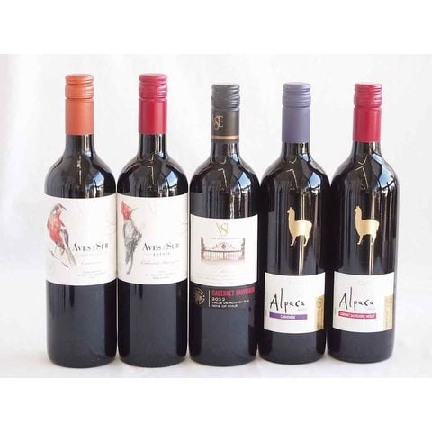 しっかりした存在感チリ赤ワイン 5本セット(クラシック カベルネ・ソーヴィニヨン デル スール カベルネ ソーヴィニヨン デル・スール カルメネール アルパカ カルメネール アルパカ カベルネ・メルロー) 750ml×5本