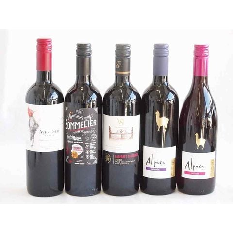 しっかりした存在感チリ赤ワイン 5本セット(クレマスキ ソムリエ カベルネ ソーヴィニヨン クラシック カベルネ・ソーヴィニヨン デル スール カベルネ ソーヴィニヨン アルパカ ピノ ノワール アルパカ カルメネール ) 750ml×5本