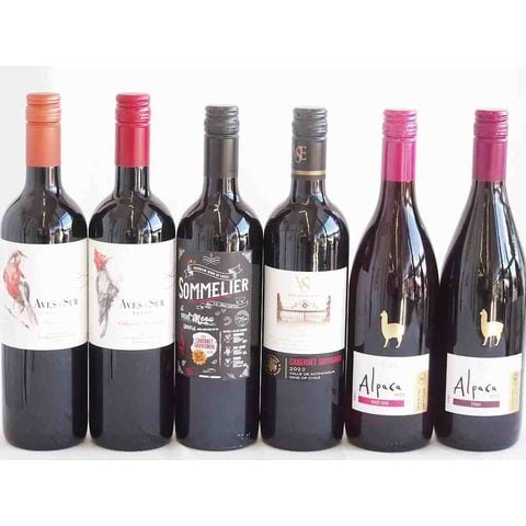 しっかりした存在感チリ赤ワイン 6本セット(クレマスキ ソムリエ カベルネ ソーヴィニヨン クラシック カベルネ・ソーヴィニヨン デル スール カベルネ ソーヴィニヨン デル・スール カルメネール アルパカ シラー アルパカ ピノ ノワール) 750m