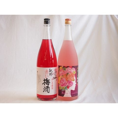梅酒2本セット(ローズ梅酒(愛知) 赤しそ赤い梅酒(和歌山)) 1800ml×2本
