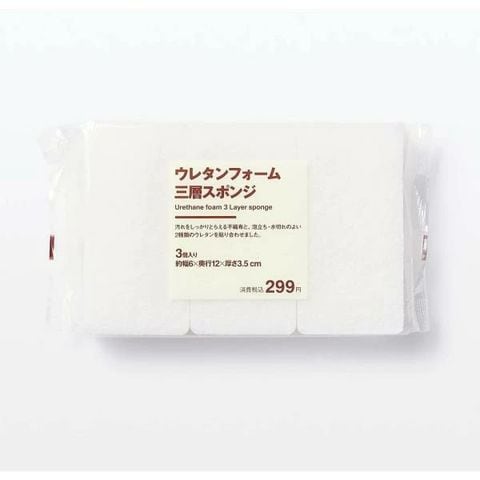 無印良品 ウレタンフォーム三層スポンジ 3個入 食器用 油汚れ用 シンク洗い用 汚れがとれる きめ細かな泡 水切れ 清潔 厚い 丈夫 三層構造 替え時が分かりやすい キッチンスポンジ 洗剤 台所 シンプル モノトーン キッチン