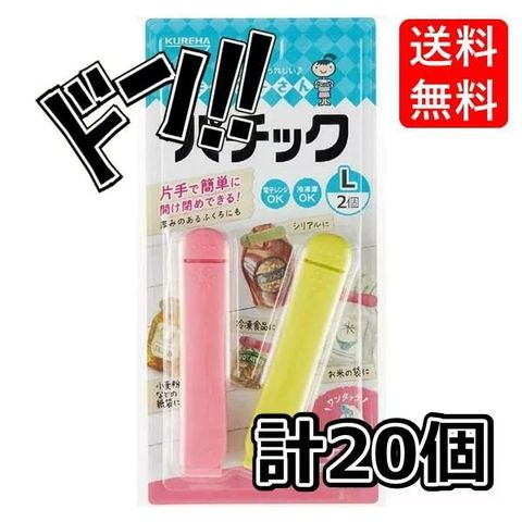 パチック(L)2個 20*5 × 20個セット クレハ 片手 フィット ワンタッチ 簡単 開け閉め 耐久性 熱に強い 袋用クリップ 袋用 クリップ S M L
