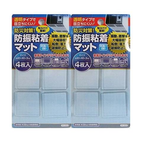 透明タイプで目立ちにくい! 防災対策! 防振粘着マット(4枚入り) (2袋)
