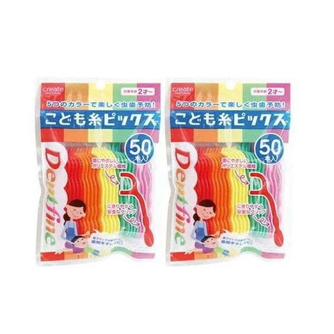【まとめ買い】デントファイン こども糸ピックス 50本入【×2個】 子供 フロス 子供用 虫歯 予防 ケア 安全 衛生的 健康 歯の成長 オーラルケア 歯
