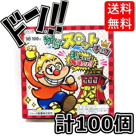 わくわくスロットチョコ 100付 (駄菓子) ジャック製菓 金券 当たりくじ 仕掛け 子供も大人も遊んで楽しめる チョコ グミ ミンツ 当たり付き 面白い おすすめ 遊び ゲーム ドキドキ 景品 子供会 子ども会 プレゼント