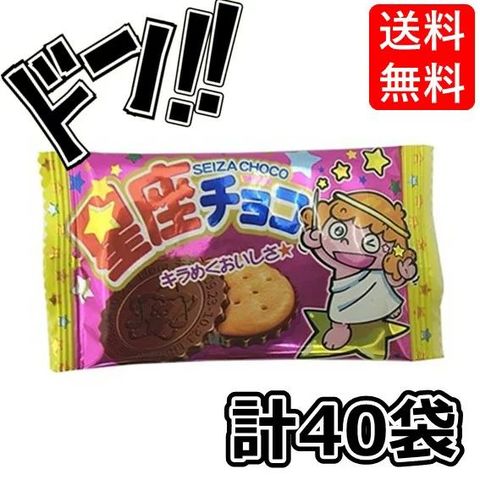 星座チョコ 1個×40袋 やおきん 香ばしいビスケット チョコレート 星座のキャラクター かわいい 定番 懐かしい 駄菓子 お菓子 イベント 景品 縁日 遠足 学園祭 子供会 お試し ポイント消化 送料無料