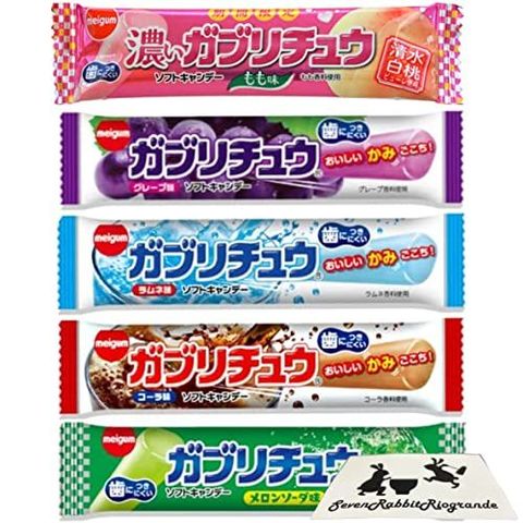 ガブリチュウ アソート 25本 (5種 各5本) 濃い桃/グレープ/メロンソーダ/ラムネ/コーラ 7RabbitRiograndeオリジナルステッカー付 【商標登録番号 第6667215】 明治チューインガム