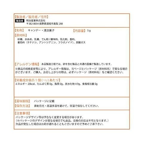 砂糖(国内製造)、水あめ、乳糖、でん粉/酸味料、乳化剤、香料、着色料(クチナシ、アントシアニン、フラボノイド)、炭酸ガス