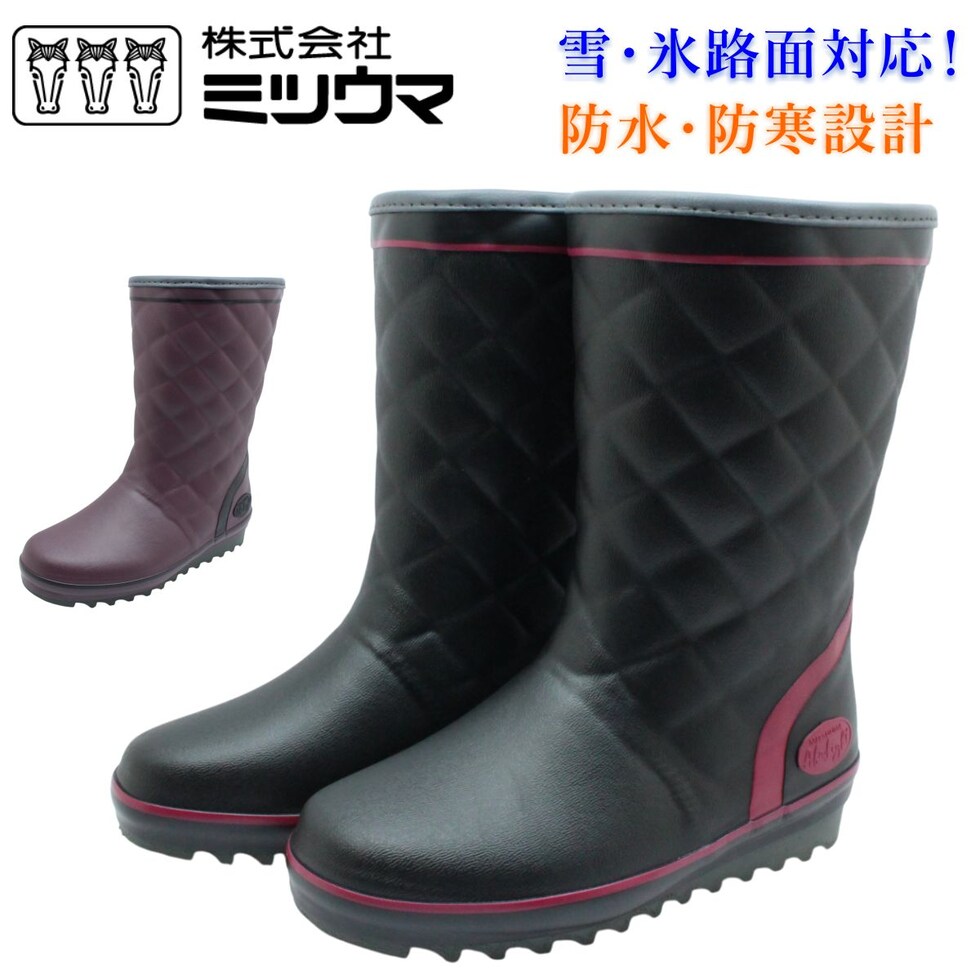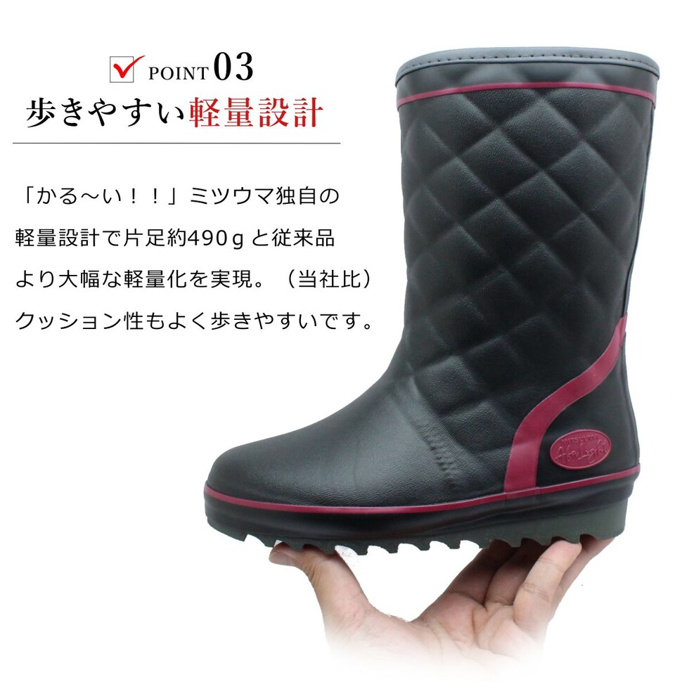 | ミツウマ レディース 長靴 エーファライト No.4100 MUNS 軽量 防寒 防水 防滑 レインブーツ ハーフブーツ 雨・雪対応 セラミックソール |