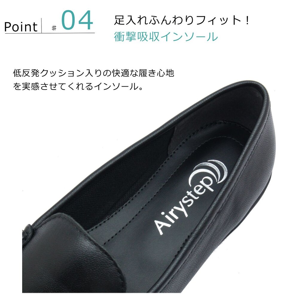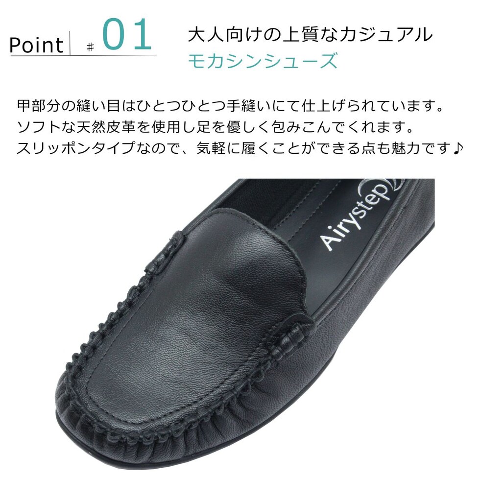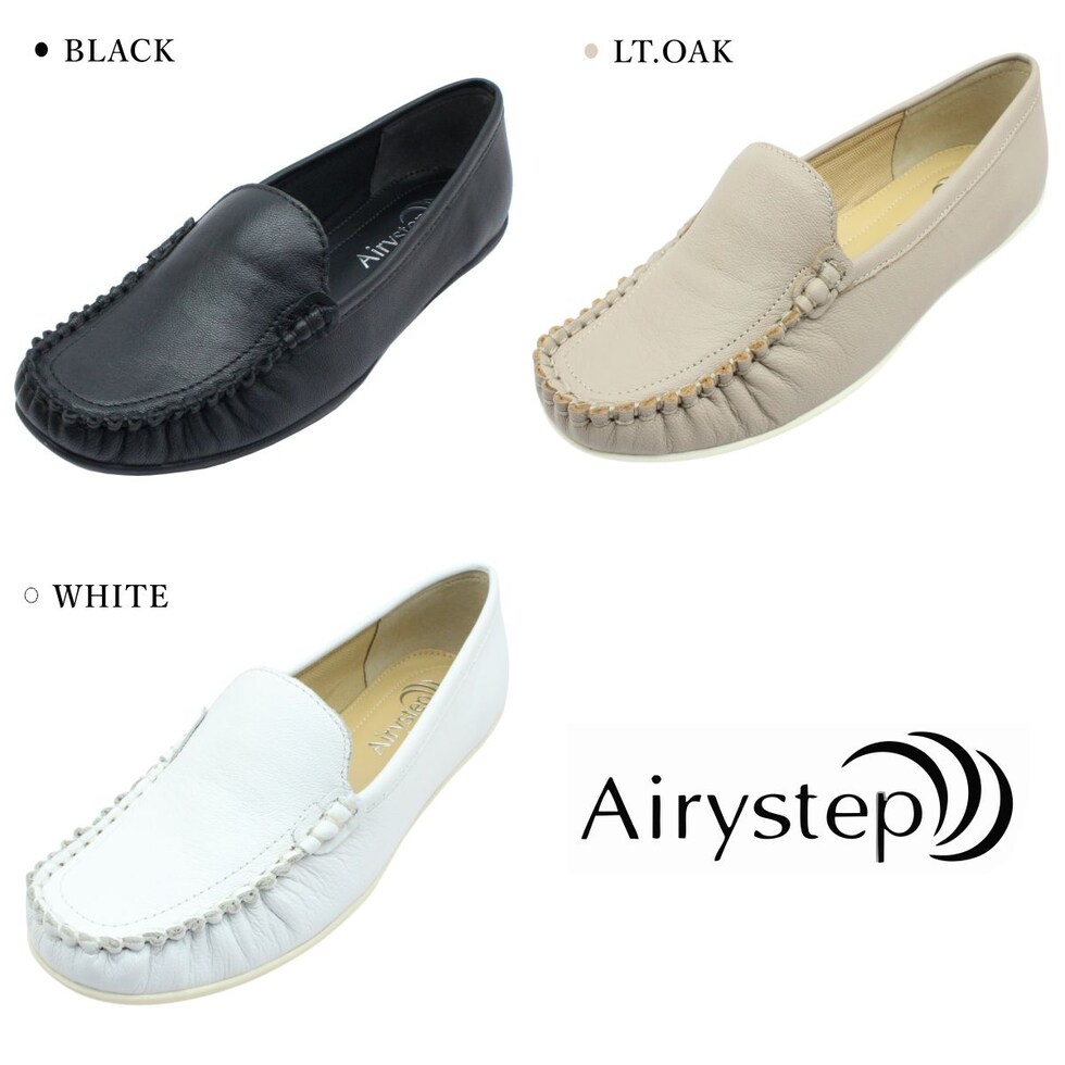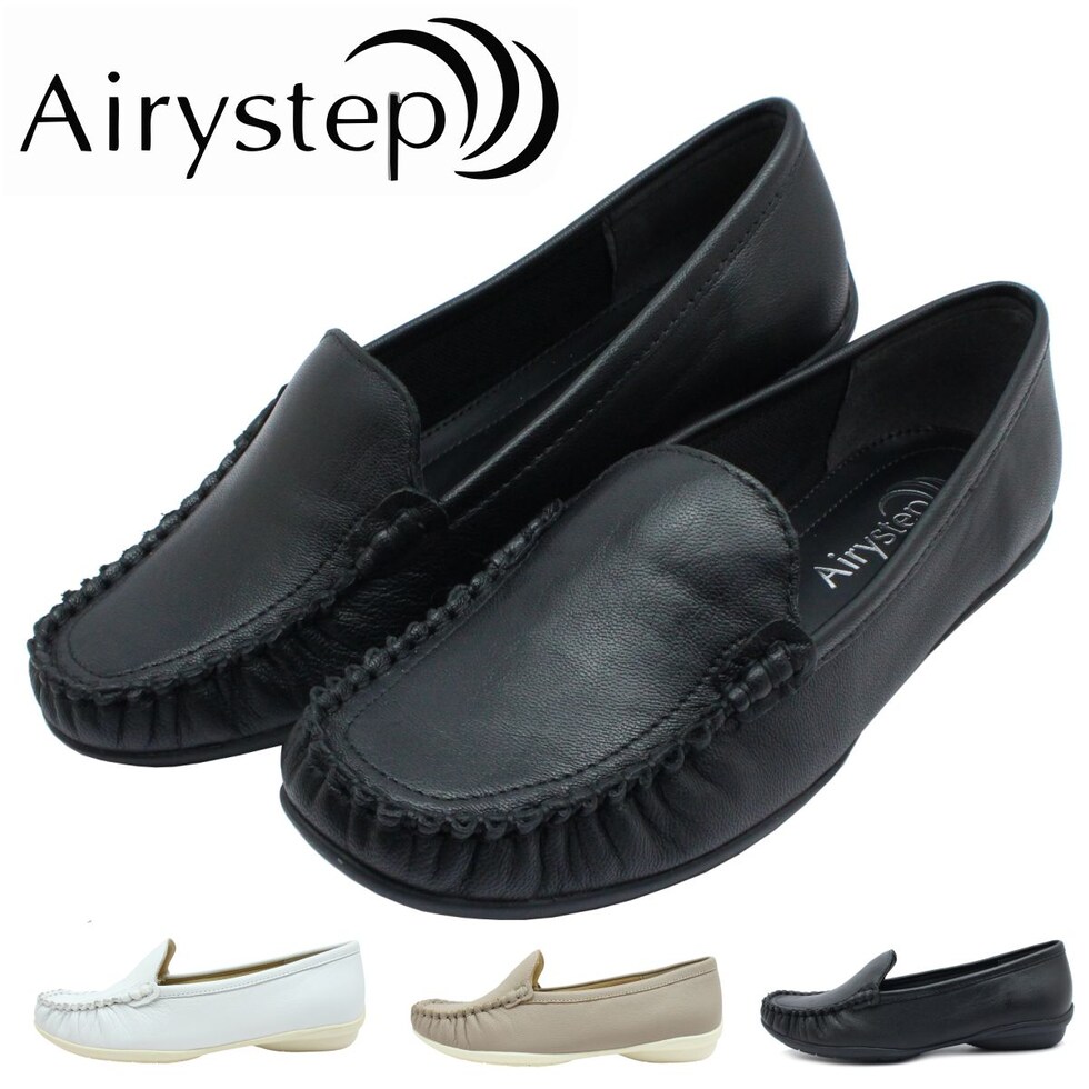Airystep エアリーステップ レディース モカシンシューズ 6339 パンプス 3E 本革 ぺたんこ ローヒール 歩きやすい