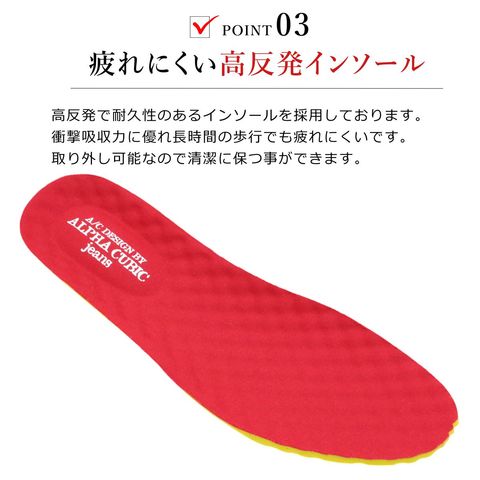 クッション性の高い高反発インソールが、足裏にかかる衝撃を優しく吸収。