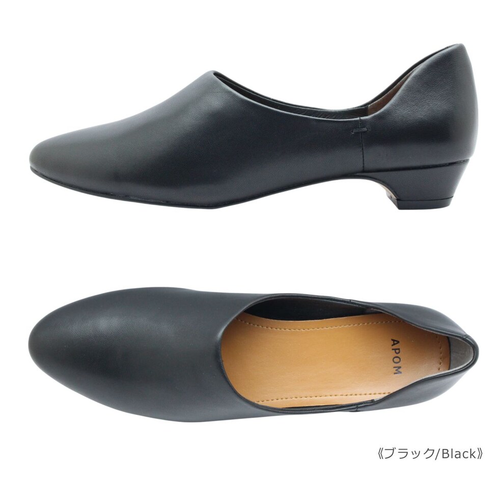 | APOM アポム 295 レディース パンプス ローヒール レザー 本革 靴 |