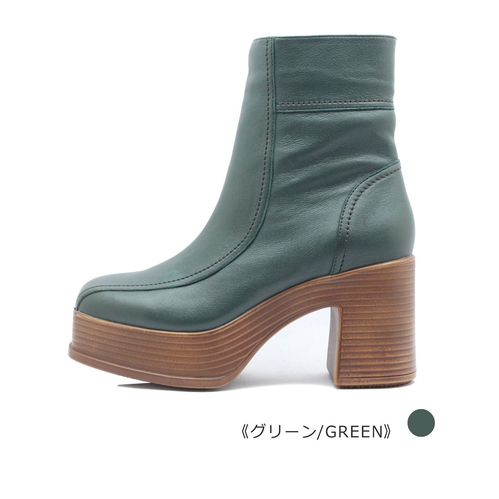 あしながおじさん レディース ブーツ 1310217 厚底 チャンキーヒール ショート 靴 黒 緑 ブラック ブラウン グリーン