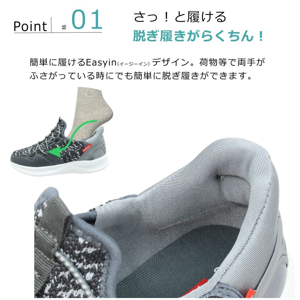 足入れがしやすい踵の形状で、簡単に脱ぎ履きができる楽ちんスニーカー。