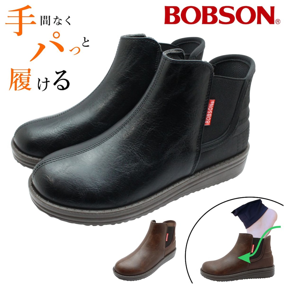 BOBSON ボブソン レディース ハンズフリー スノーブーツ BS-0104 スリッポン 屈曲性 防滑 幅広設計 3E 暖かい 厚底 サイドゴア ショートブーツ スニーカー 0104