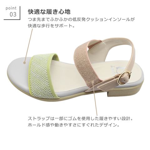 ゴム付ストラップで履きやすい!