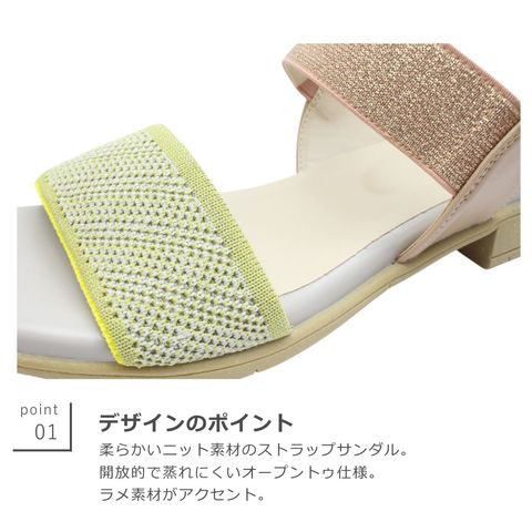 柔らかいニット素材のストラップサンダル。