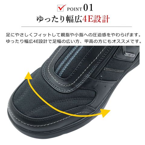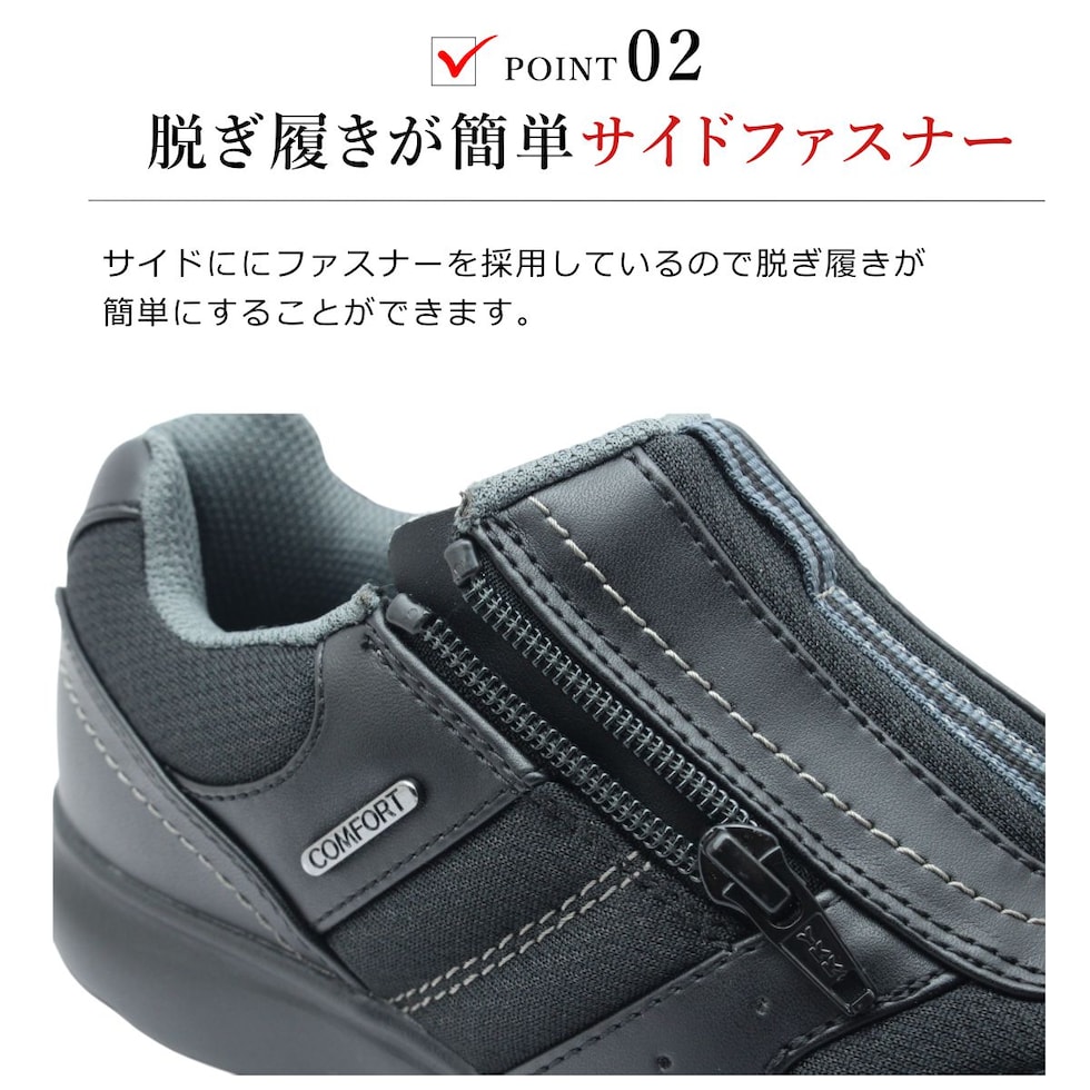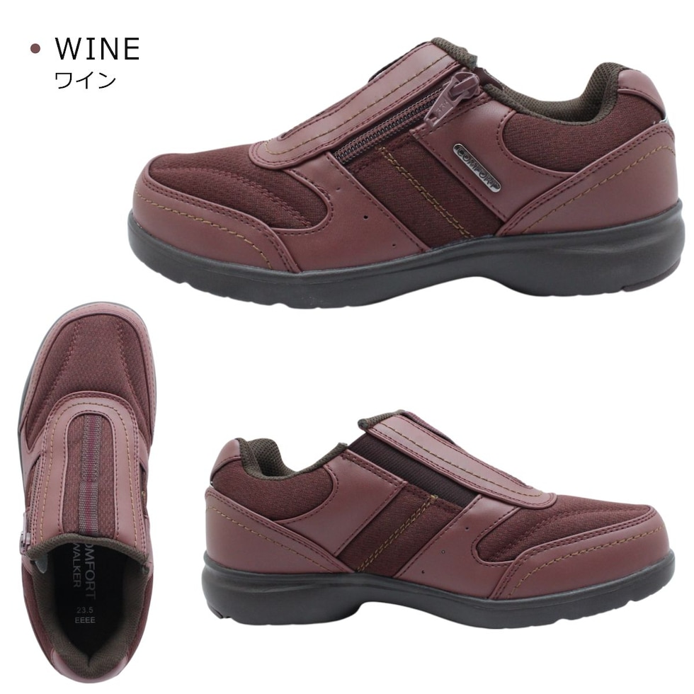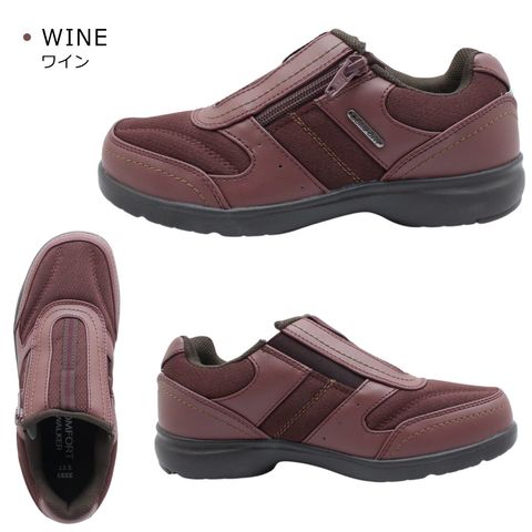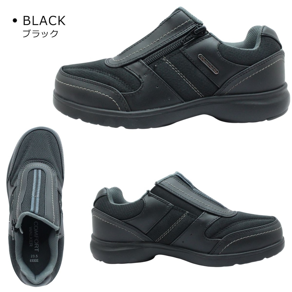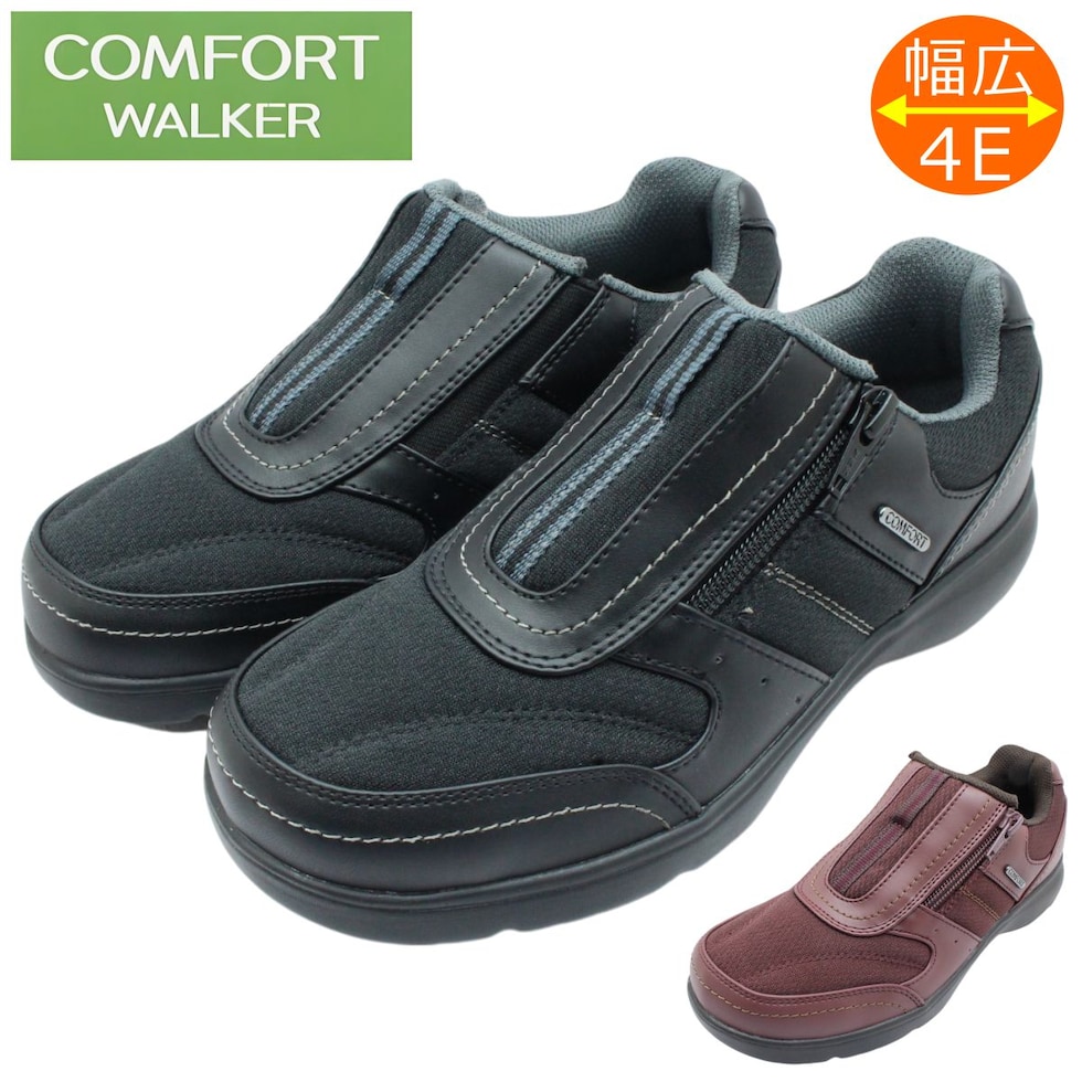 | コンフォートウォーカー レディース CF0372 スニーカー 幅広 4E 軽量 ウォーキング シューズ 0372 ファスナー スリッポン 靴 COMFORT WALKER |