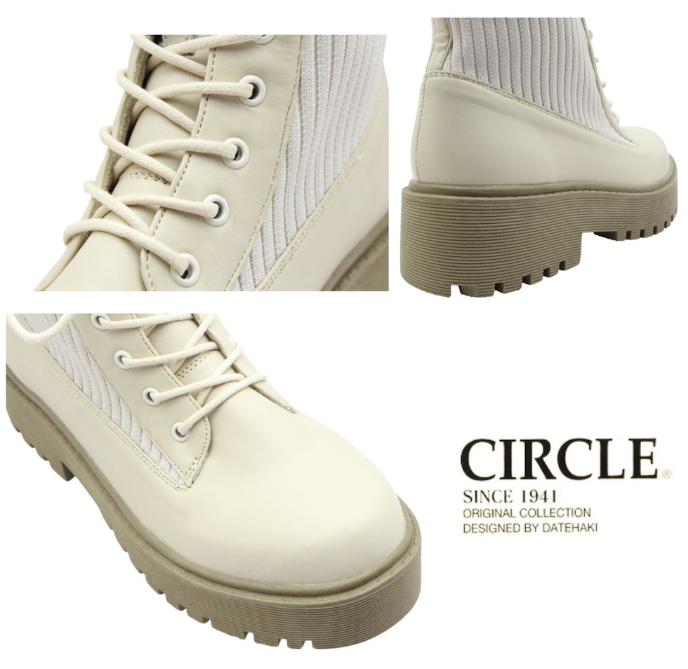 CIRCLE サークル レディース スノーブーツ 雪道対応 37000 リブニット 厚底 防滑 防寒 撥水 ストレッチ ショートブーツ 紐靴 ノースデイト ダテハキ 北海道