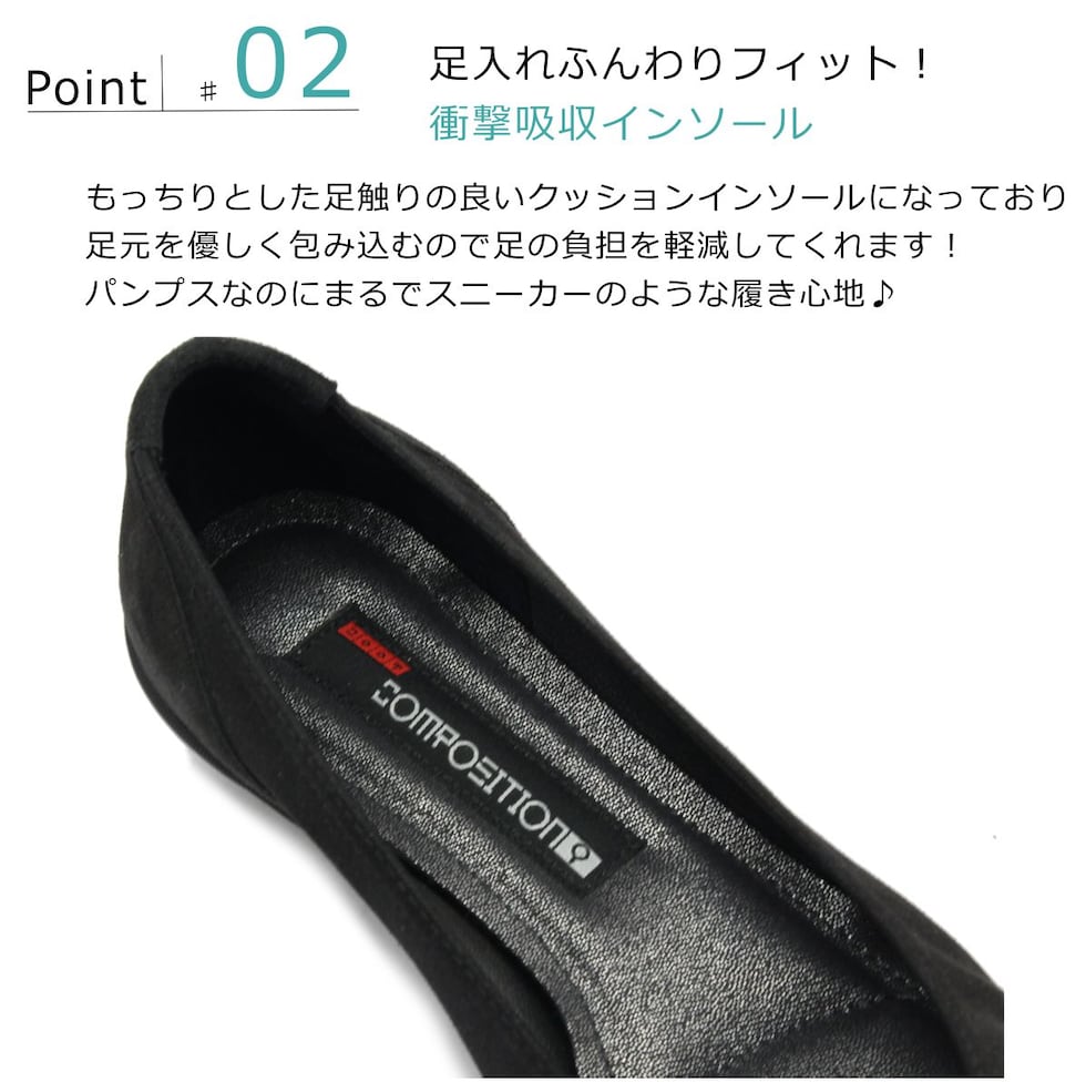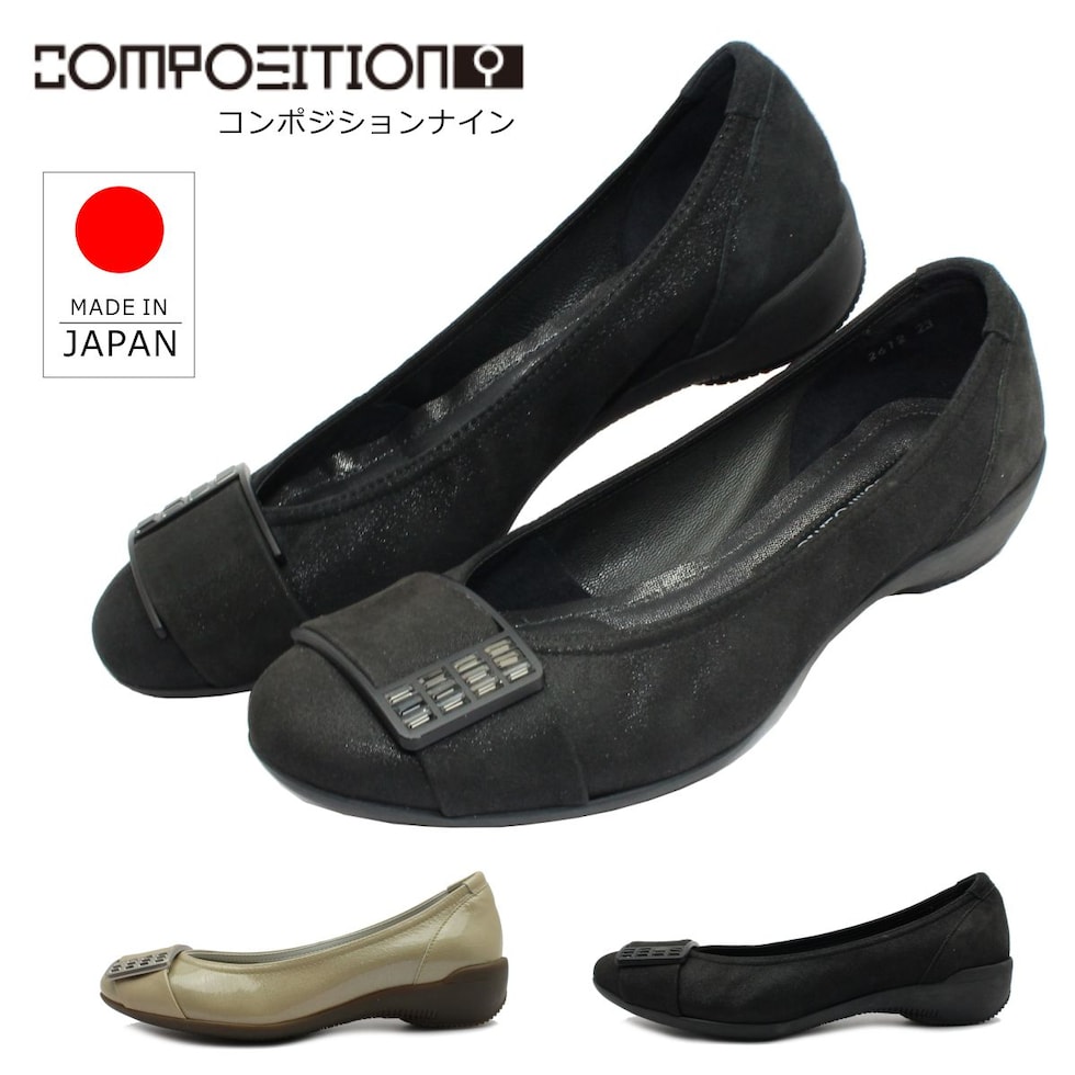 | コンポジションナイン composition9 2612 パンプス ウェッジヒール コンフォート バックル 本革 レザー 本革 日本製 バレエシューズ