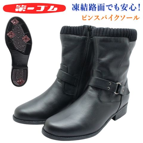 第一ゴム レディース ピンスパイク レザー ショートブーツ 6637 ラ・シェブリー サイドファスナー 本革 防滑 撥水 スノーシューズ 日本製 北海道