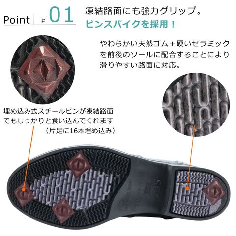 | 第一ゴム レディース ピンスパイク レザー ショートブーツ 6637 ラ・シェブリー サイドファスナー 本革 防滑 撥水 スノーシューズ 日本製 北海道 |