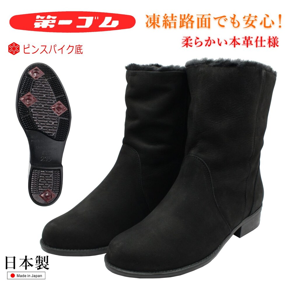| 第一ゴム レディース ピンスパイク レザー ブーツ 6639 ラ・シェブリー 日本製 本革 ショートブーツ 北海道 ブラック |