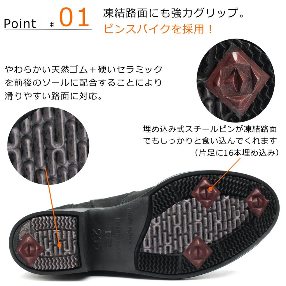 第一ゴム レディース ピンスパイク レザー ブーツ 6639 ラ・シェブリー 日本製 本革 ショートブーツ 北海道 ブラック ヌバック