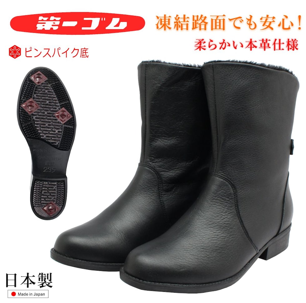 | 第一ゴム レディース ピンスパイク レザー ブーツ 6647 ラ・シェブリー 日本製 本革 ショートブーツ 北海道 ブラック