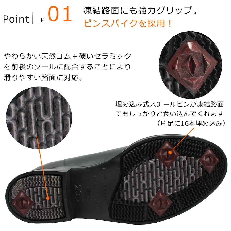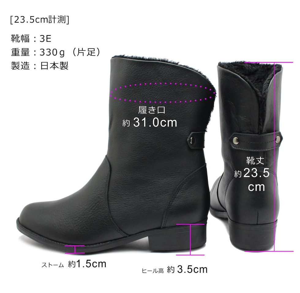第一ゴム レディース ピンスパイク レザー ブーツ 6647 ラ・シェブリー 日本製 本革 ショートブーツ 北海道 ブラック