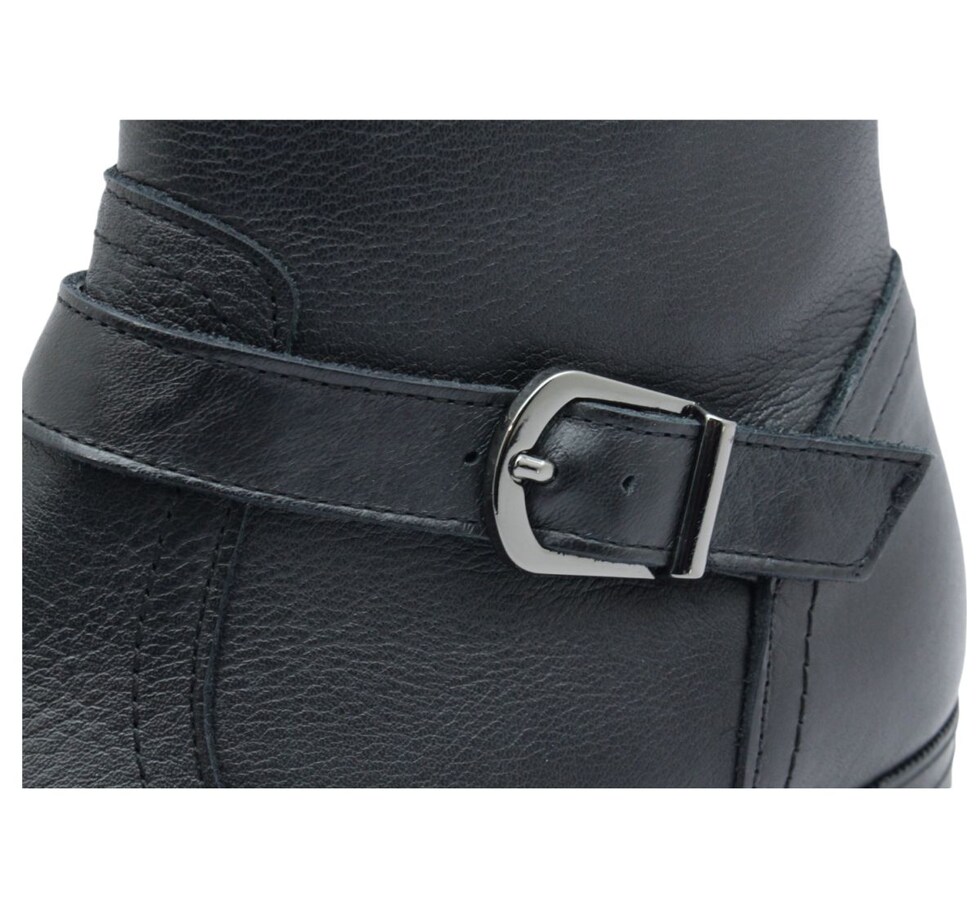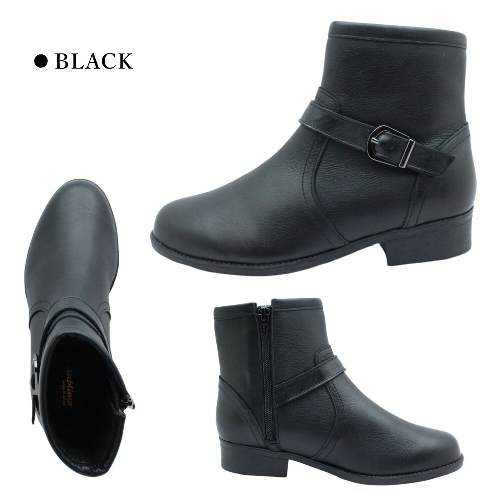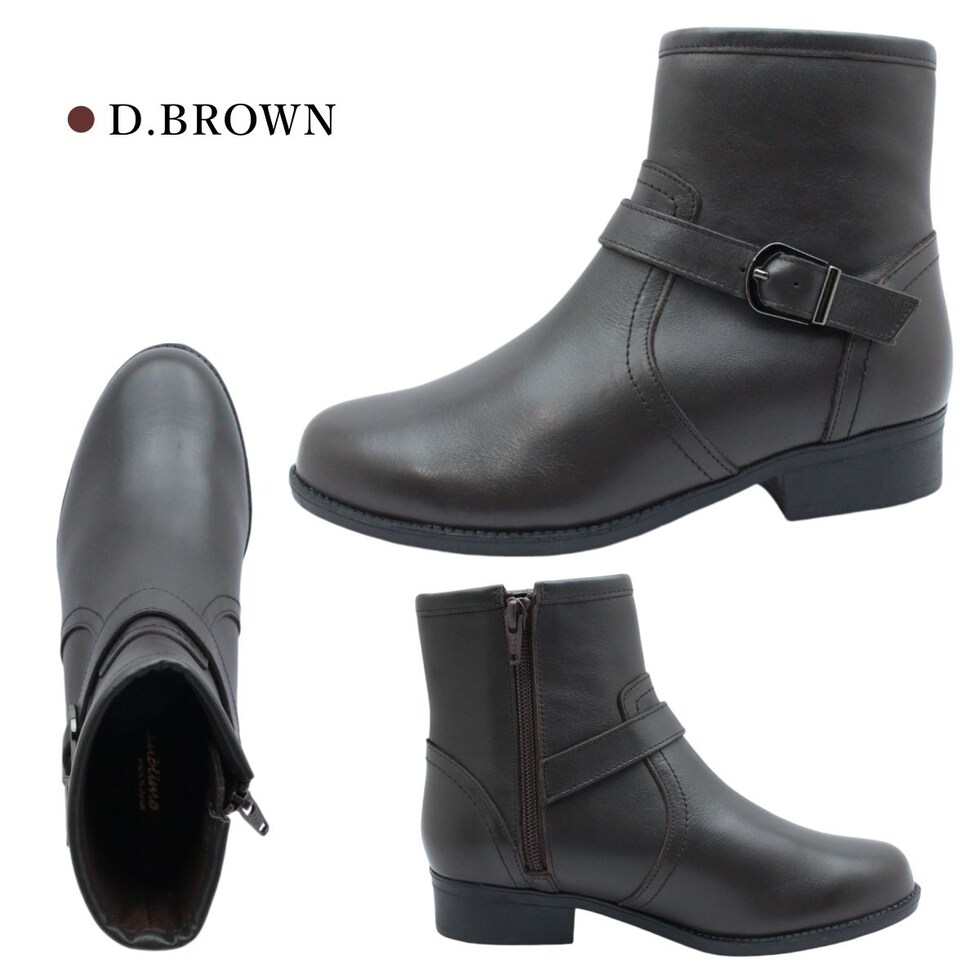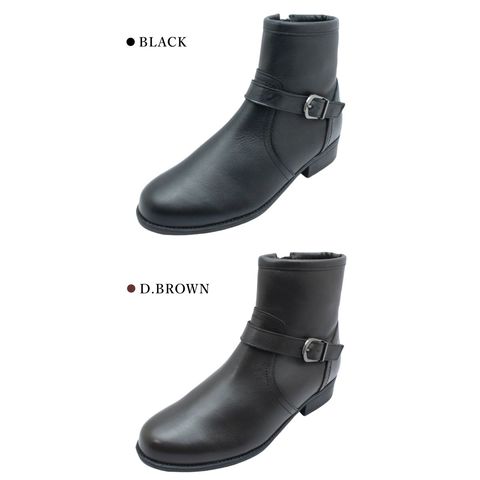 上品なベルトデザインと金具がワンポイントのショートブーツになります。