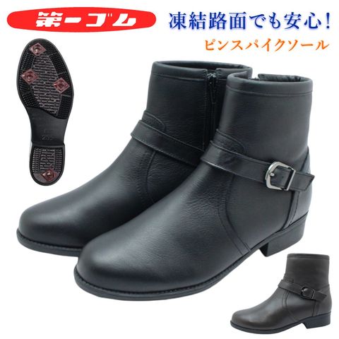 第一ゴム レディース ピンスパイク レザー ショートブーツ 6648 ラ・シェブリー サイドファスナー 本革 防滑 撥水 スノーシューズ 日本製 北海道