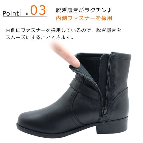 サイドにはファスナーを採用しているので脱ぎ履きが簡単です。