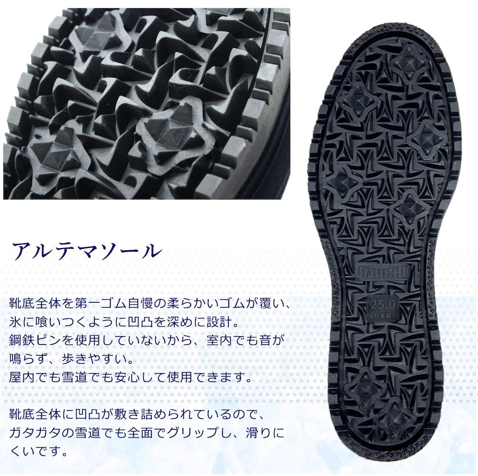 靴底全体を第一ゴム自慢の柔らかいゴムが覆い、氷に喰いつくように凹凸を深めに設計。