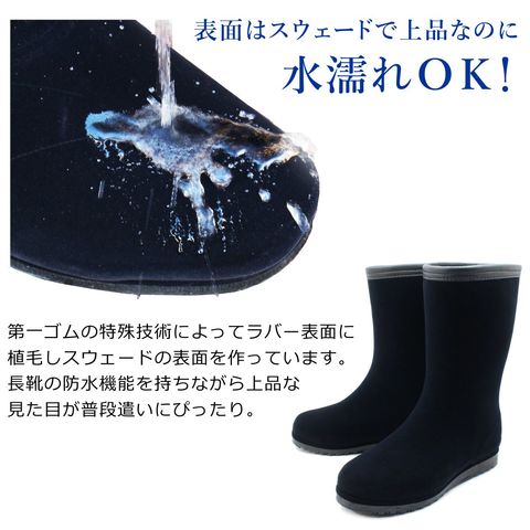 長靴の防水機能を持ちながら、上品でリッチな見た目が普段遣いにピッタリ