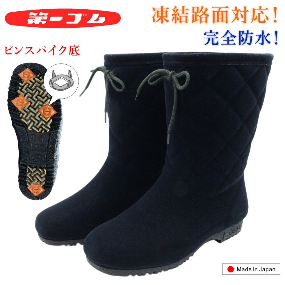 | 第一ゴム レディース ピンスパイク W81 シェブリー スエード 雪道対応 完全防水 長靴 アイスバーン スノーブーツ ブラック 靴 北海道 |