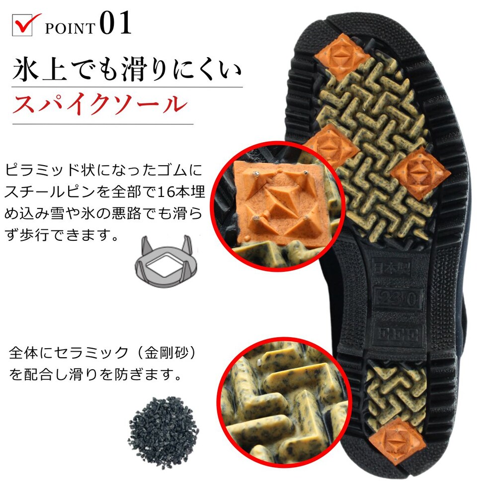 第一ゴム ピンスパイク シェブリー スエード W85 レディース 雪道対応 完全防水 長靴 ブーツ ピンスパイク 北海道