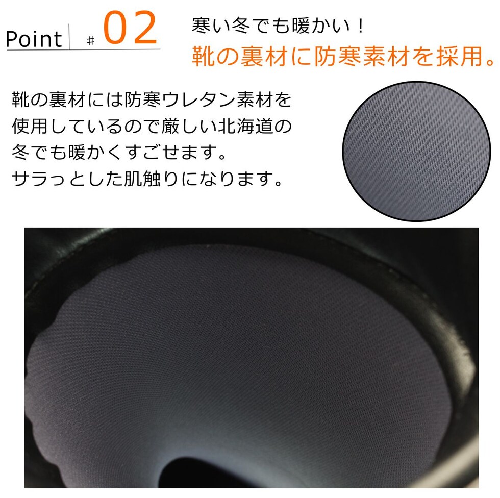 裏地には防寒ウレタン素材を使用していますので厳しい寒さでも暖かくすごせます。
