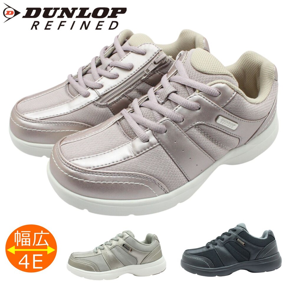 ダンロップ DUNLOP レディース スニーカー 幅広 4E 軽量 紐靴 ファスナー ウォーキングシューズ コンフォート ジョギング DC1509 C1509 リファインド