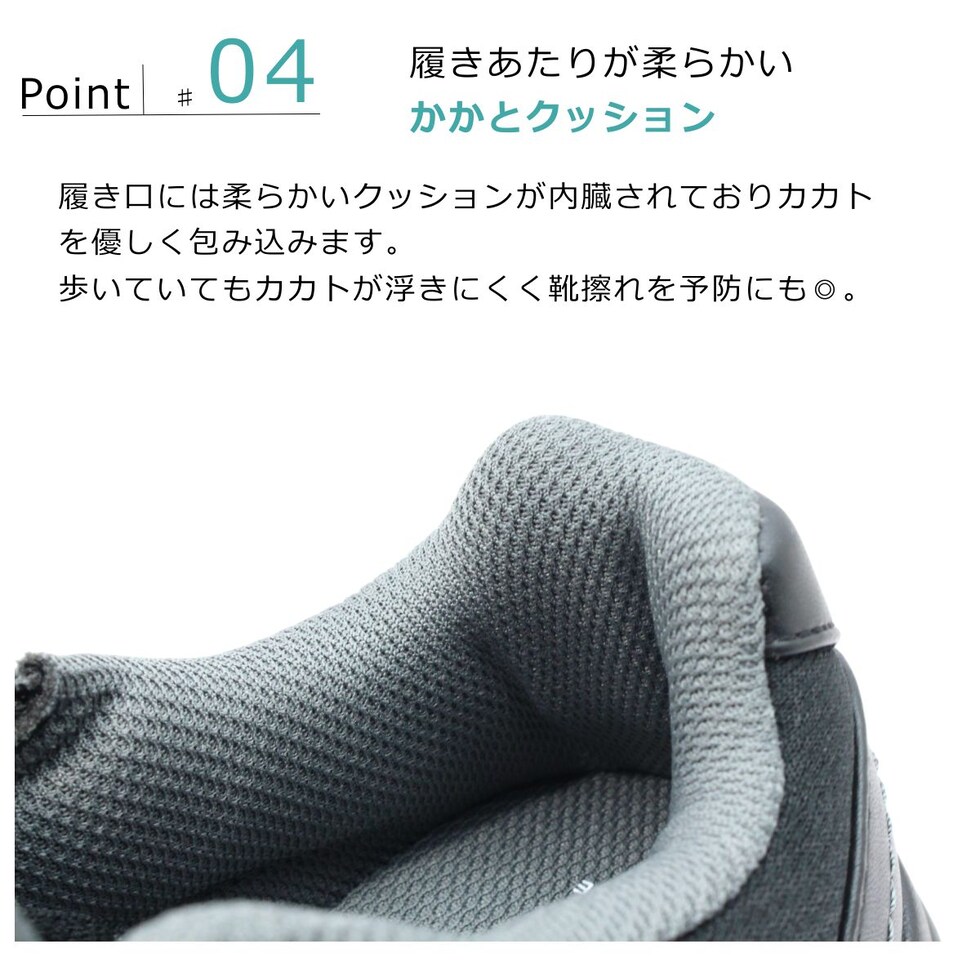 軽量でボリューム感のある靴底は、ウォーキングに最適なクッション性と安定性を両立し、