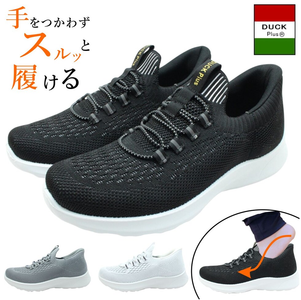DUCK Plus スリッポン レディース スニーカー ハンズフリー 100 ゴム紐 スリッポン 手を使わず履ける 軽量 靴 ダックプラス SPEEDY DUCK