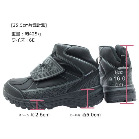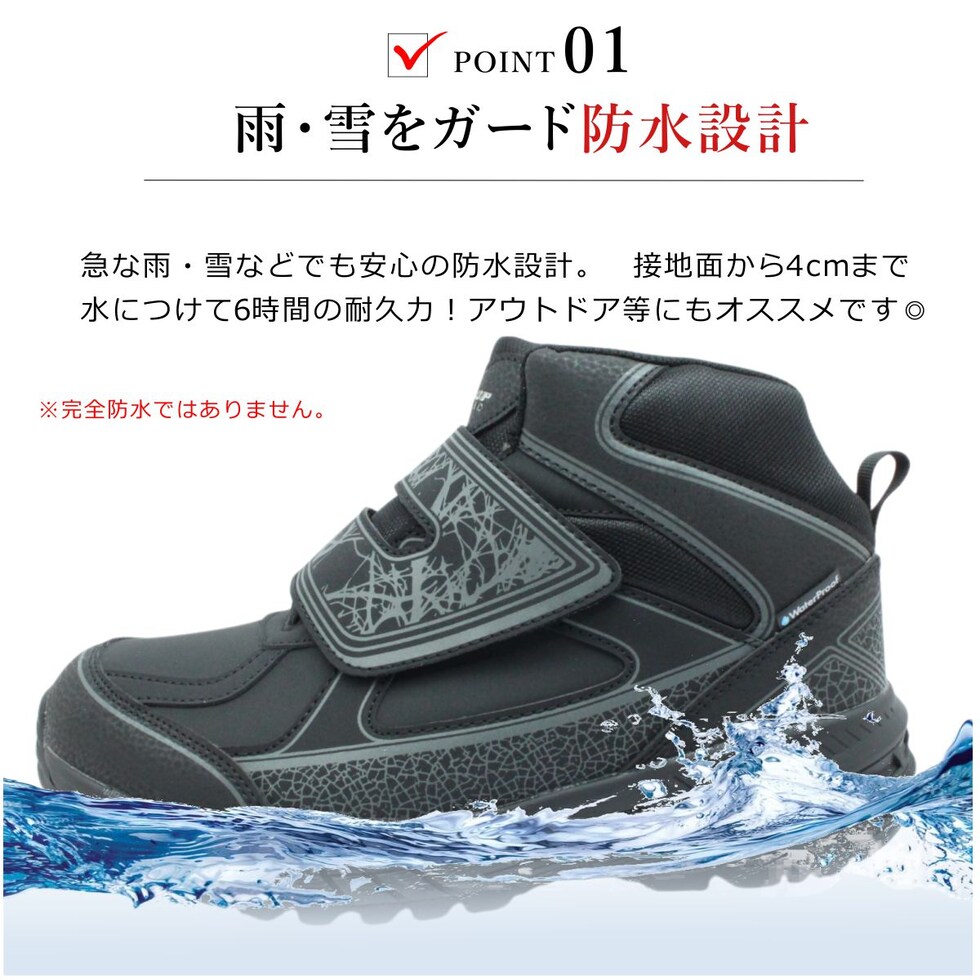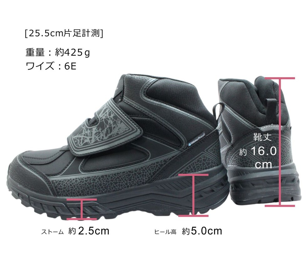 ダンロップ DUNLOP メンズ 幅広 6E スノーブーツ マジックテープ 防水 防滑 DU6016 U6016WP リファインド スニーカー ハイカット スノトレ ブラック