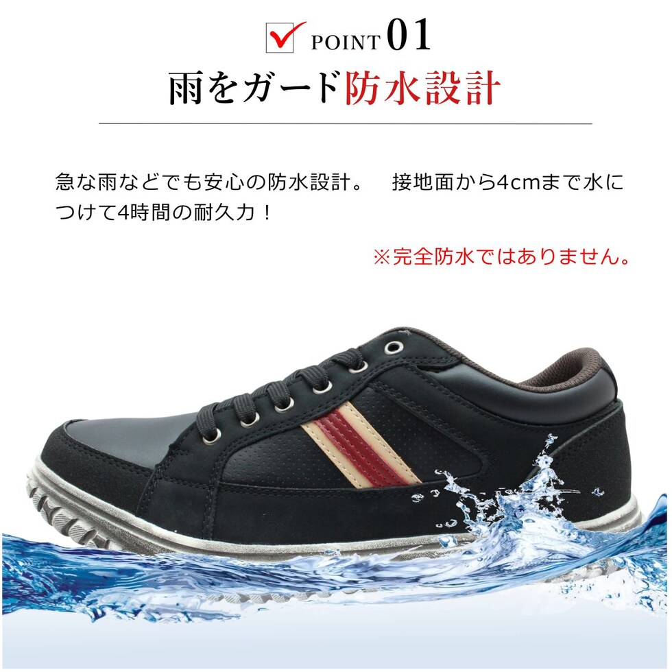 4cm×4時間の防水設計で、雨の日も頼れるメンズスニーカーです。