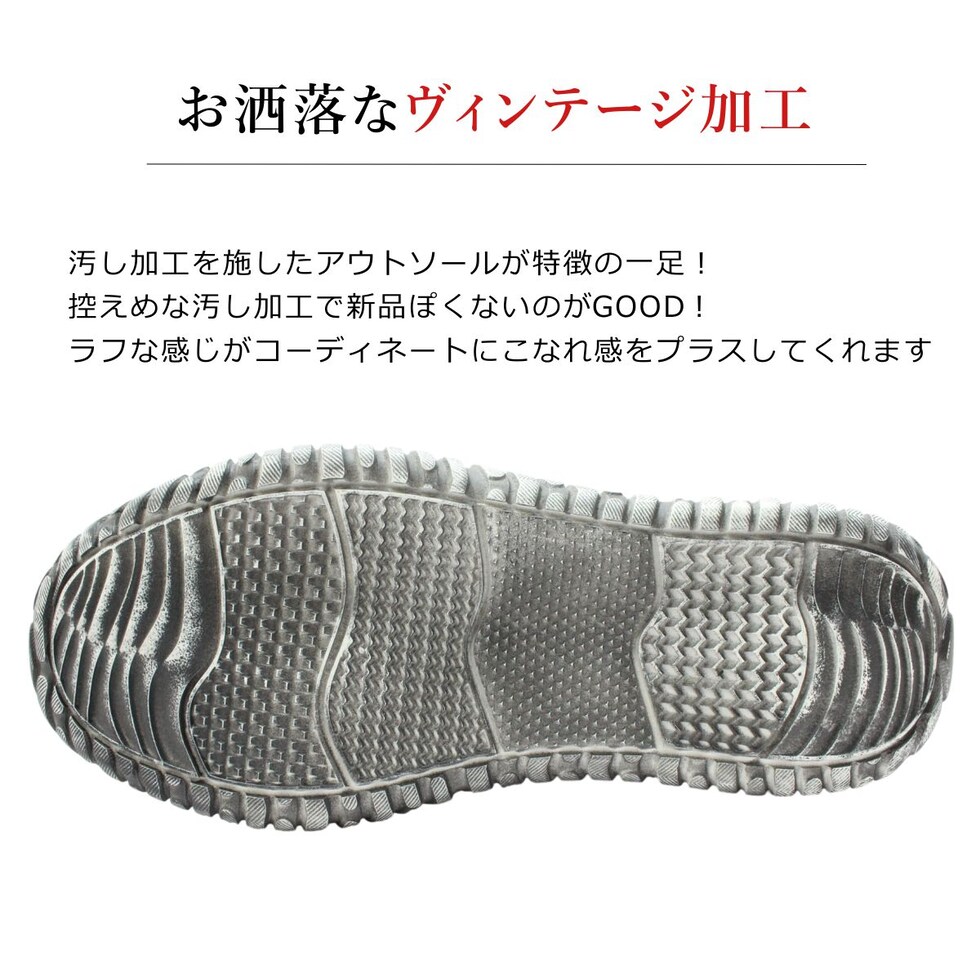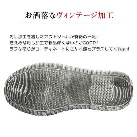 ヴィンテージのような風合いを出したソール、サイドのアクセントカラーと、デザイン性の高さも魅力の一足。