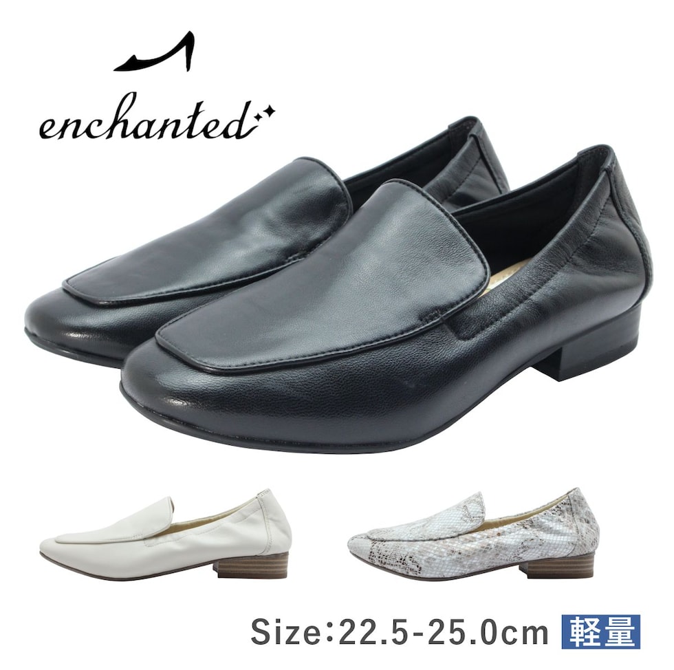 enchanted エンチャンテッド レディース シューズ 21010 バレエ サブリナ スクエアトゥ フラット ローヒール 歩きやすい ぺたんこ 軽い 軽量 靴 黒 ブラック グレー アイボリー