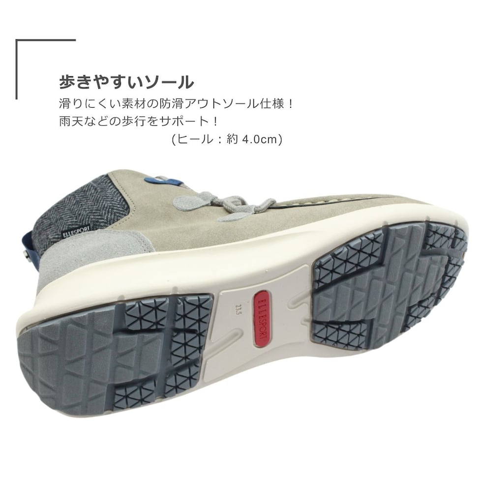 ELLE SPORT エルスポーツ レディース ブーツ ESP 12590 ショート ジップ スニーカー シューズ 防水 防滑 歩きやすい 雨 靴 黒 白 ブラック グレー アイボリー