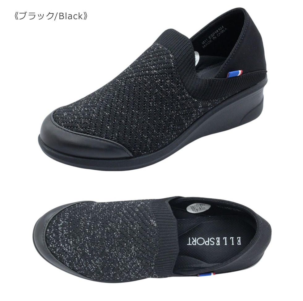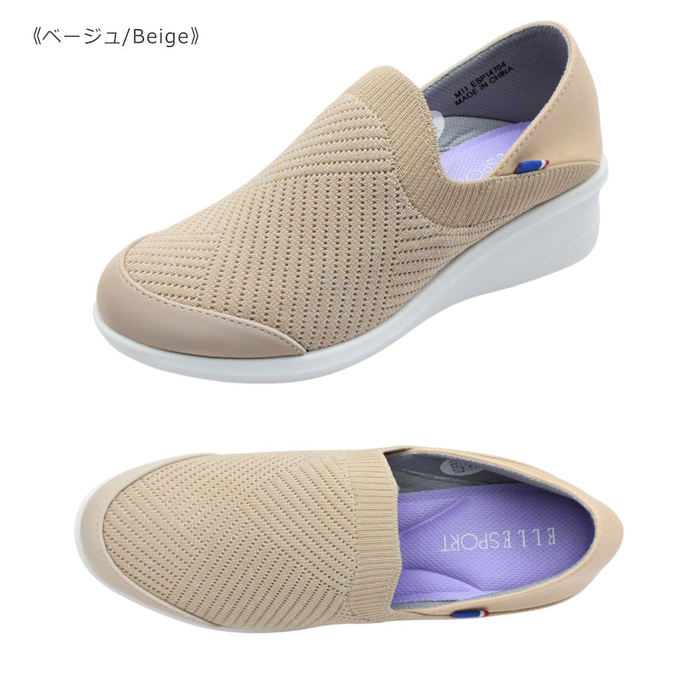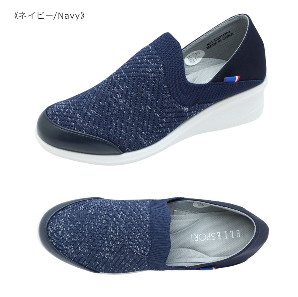 ELLESPORT エルスポーツ ESP 14704 レディース シューズ ニット ウェッジ スリッポン サボ 軽量 靴