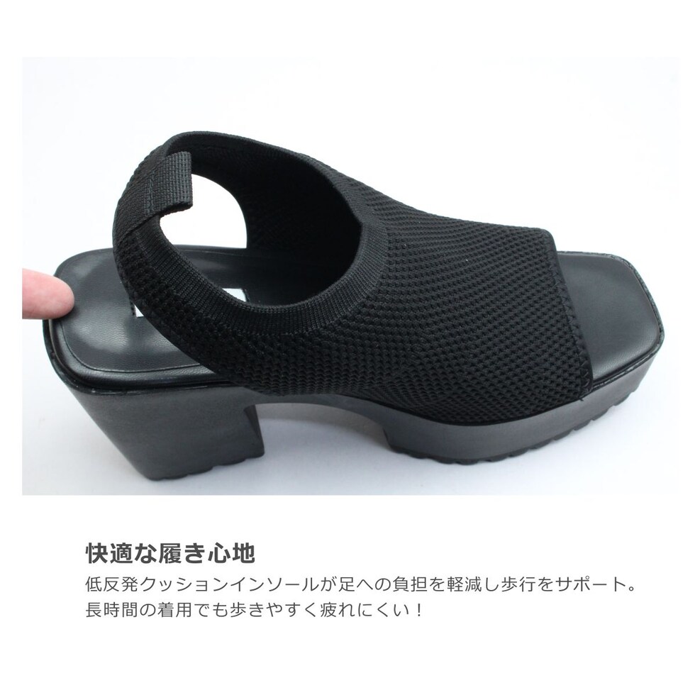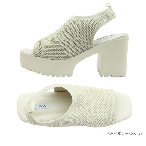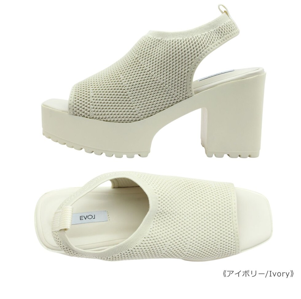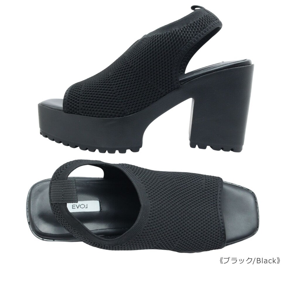 | EVOL イーボル 5320 レディース サンダル バックストラップ ニット スクエアトゥ 厚底 靴 |